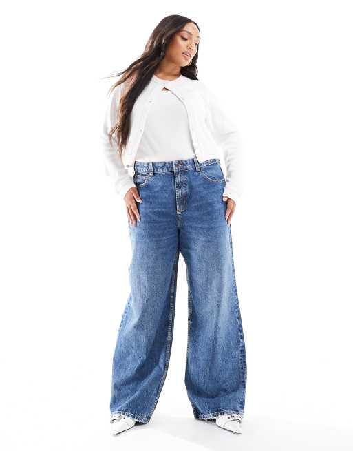 ASOS DESIGN Curve - Jeans dad fit blu medio scuro a fondo ampio