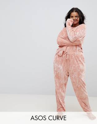 ASOS DESIGN Curve - Joggers da casa in velluto riccio