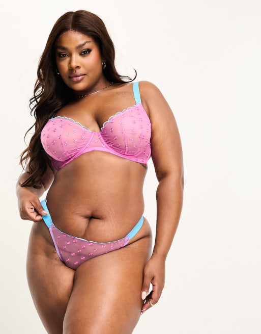 ASOS DESIGN Curve - Lauren - Completo rosa e verde-azzurro con fiori ricamati
