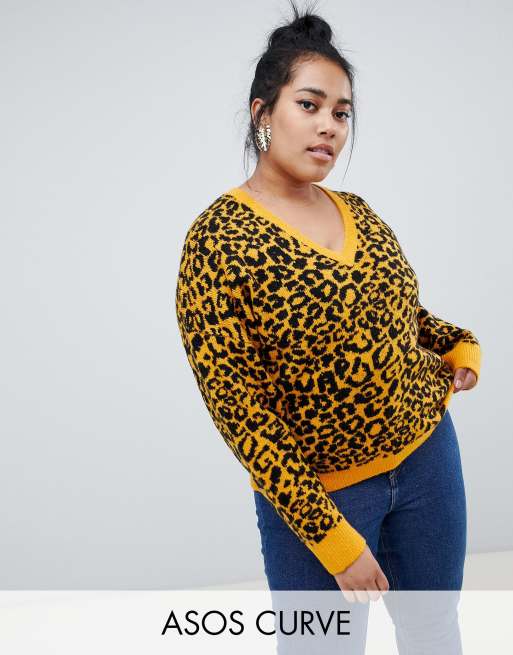 ASOS DESIGN Curve - Maglione con scollo a V e stampa animalier