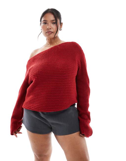 ASOS DESIGN Curve - Maglione extra largo rosso con spalla scoperta