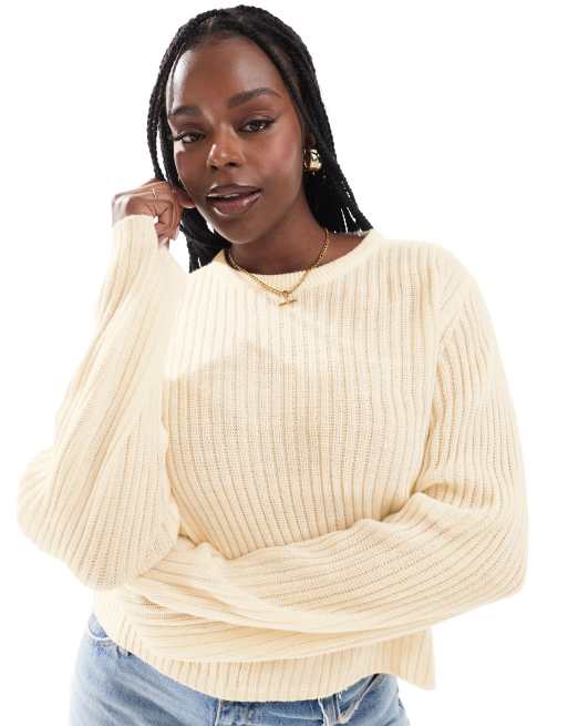 ASOS DESIGN Curve - Maglione girocollo color crema a coste