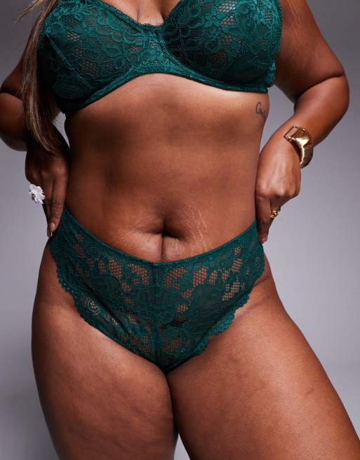 ASOS DESIGN Curve - Margot - Slip brasiliano sgambato in pizzo verde bosco