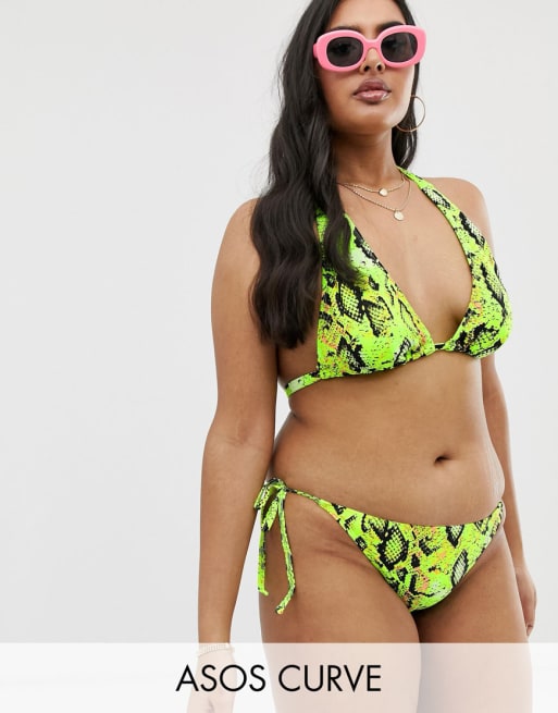 ASOS DESIGN Curve - Mix & Match - Bikini fluo pitonato allacciato al collo con laccetti