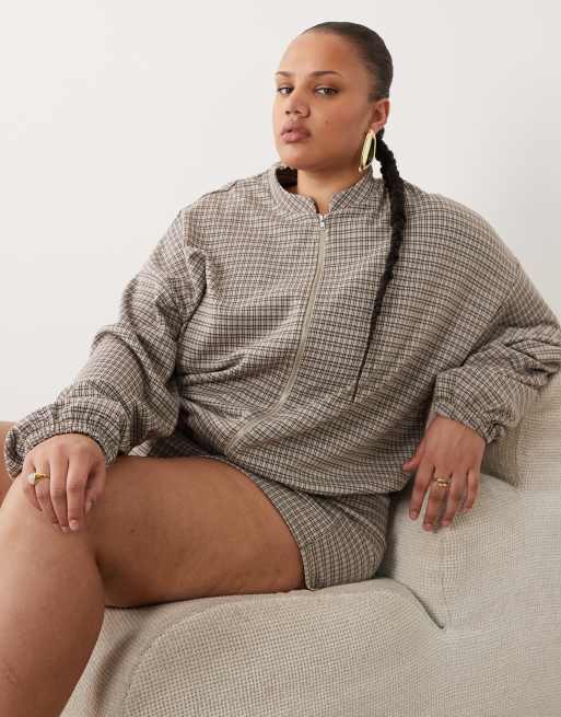 ASOS DESIGN Curve - Mix & Match - Giacca spazzolata marrone a quadri