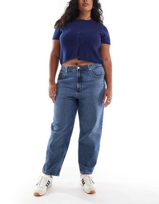 ASOS DESIGN Curve - Mom jeans lavaggio blu medio