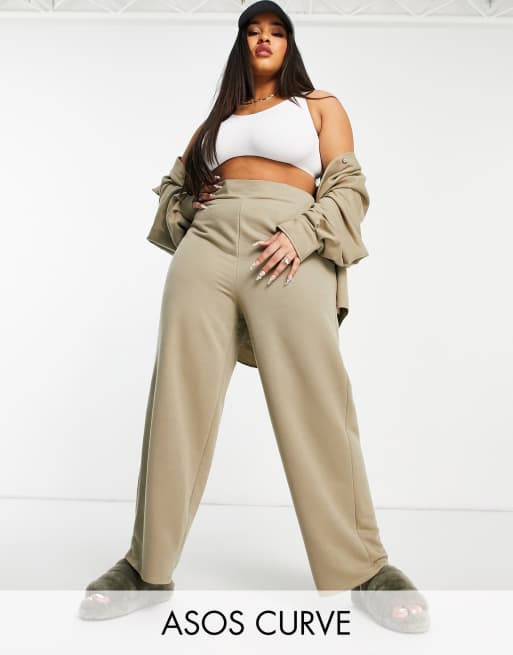 ASOS DESIGN Curve - Pantalone ampio in jersey color muschio
