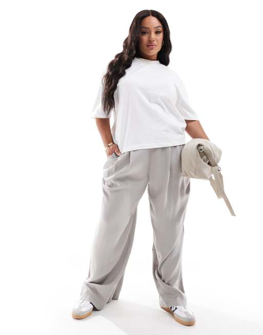 ASOS DESIGN Curve - Pantaloni a fondo ampio grigi