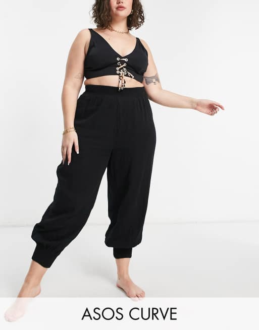 ASOS DESIGN Curve - Pantaloni harem da spiaggia arricciati neri