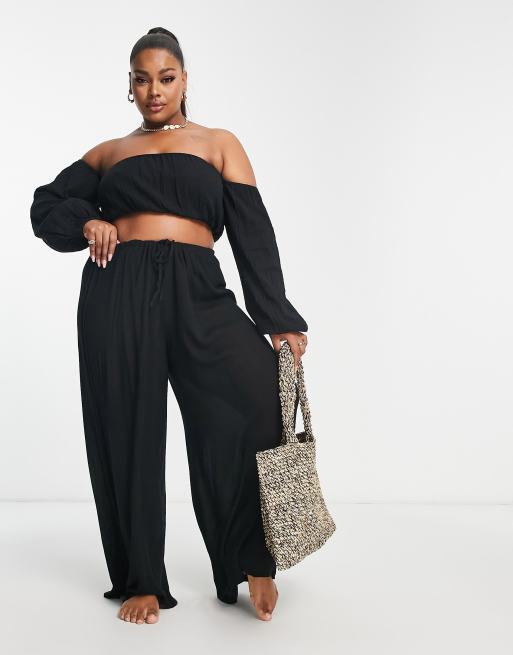 ASOS DESIGN Curve - Pantaloni palazzo da mare neri con coulisse
