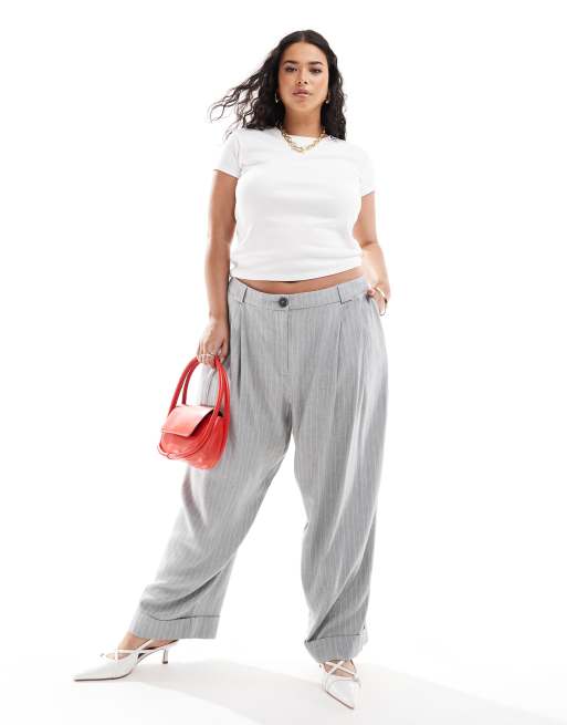 ASOS DESIGN Curve - Pantaloni sartoriali affusolati a righe con risvolto sul fondo