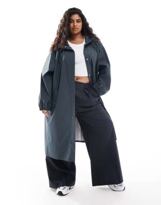 ASOS DESIGN Curve - Parka antipioggia gommato blu notte