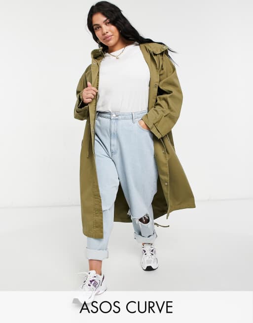 ASOS DESIGN Curve - Parka lungo color kaki