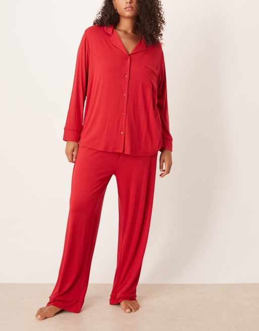 ASOS DESIGN Curve - Pigiama morbidissimo rosso con pantaloni e camicia a maniche lunghe