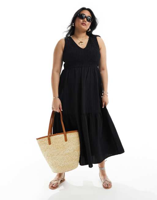ASOS DESIGN Curve - Prendisole midi allacciato sul retro con scollo profondo nero