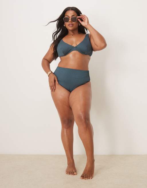 ASOS DESIGN Curve - Riddy - Bikini a coste blu ardesia