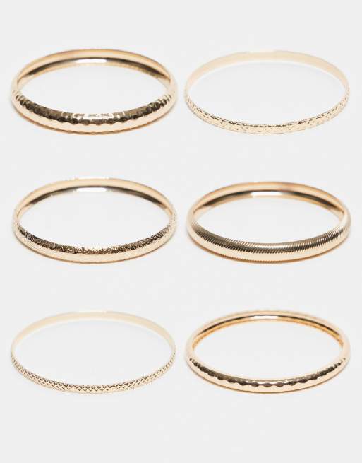 ASOS DESIGN Curve - Set da 6 bracciali tonalità oro con design martellato