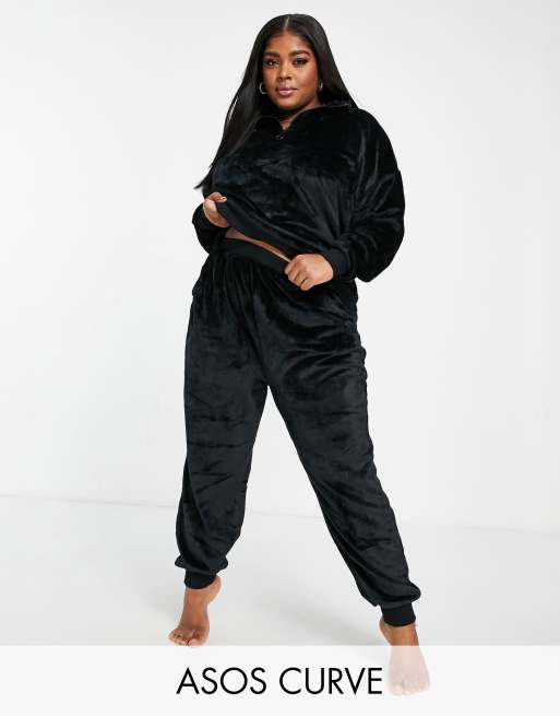 ASOS DESIGN Curve - Set da casa super morbido con felpa e joggers in nero