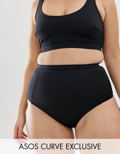 ASOS DESIGN Curve - Slip bikini a vita alta neri in tessuto riciclato