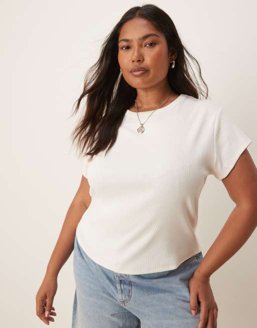 ASOS DESIGN Curve - T-shirt baby color crema a coste vestibilità ristretta
