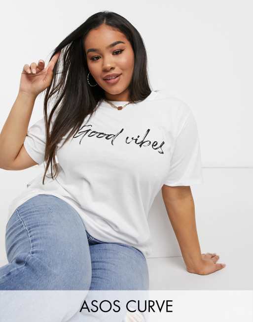 ASOS DESIGN Curve - T-shirt bianca con scritta "Good vibes"