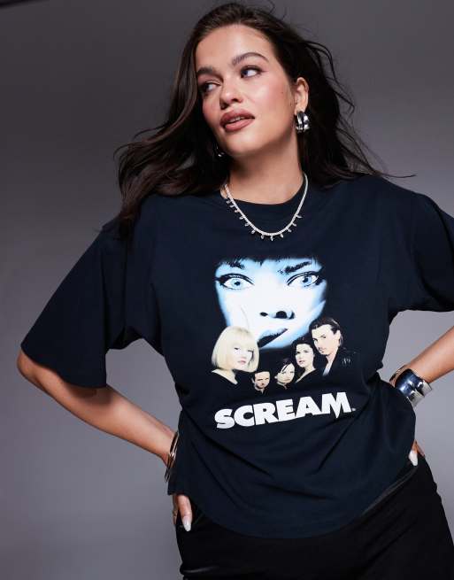 ASOS DESIGN Curve - T-shirt con vita a corsetto nera con stampa su licenza di Scream