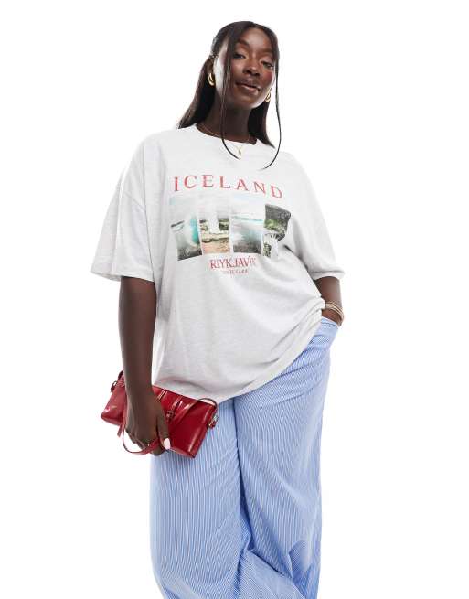 ASOS DESIGN Curve - T-shirt oversize ghiaccio mélange con stampa "Iceland"