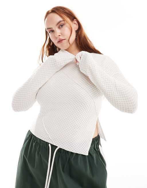 ASOS DESIGN Curve - Top a maniche lunghe testurizzato bianco sporco