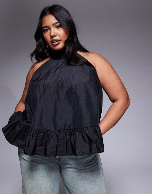 ASOS DESIGN Curve - Top grembiule accollato nero con volant sul fondo