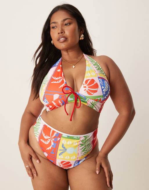 ASOS DESIGN Curve - Trinny - Top bikini a triangolo elegante con scollo profondo e stampa paradiso