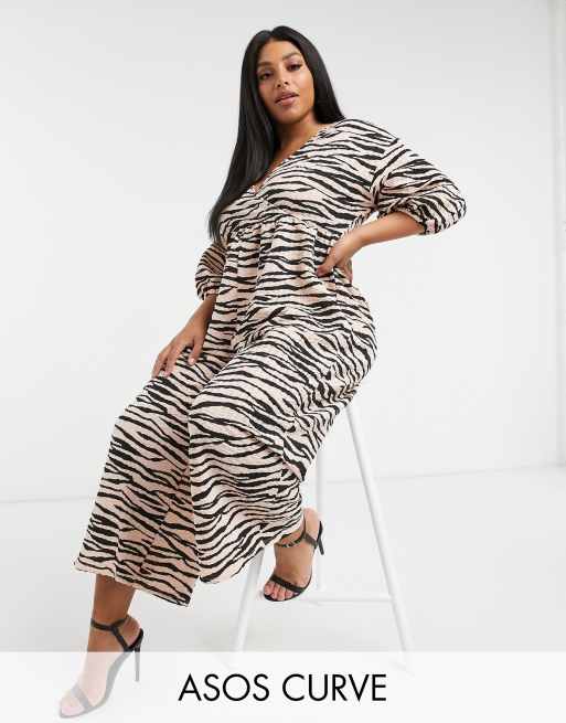 ASOS DESIGN Curve - Tuta jumpsuit a portafoglio in jersey testurizzato a punto smock con stampa animalier