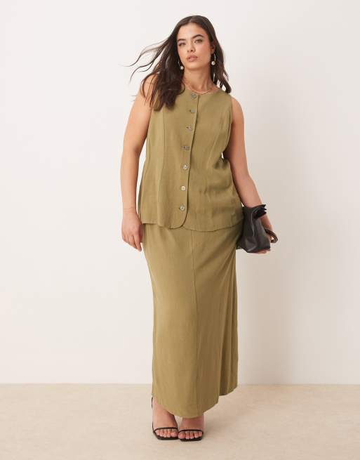 ASOS DESIGN Curve - Vestito midi stile gilet kaki in lino