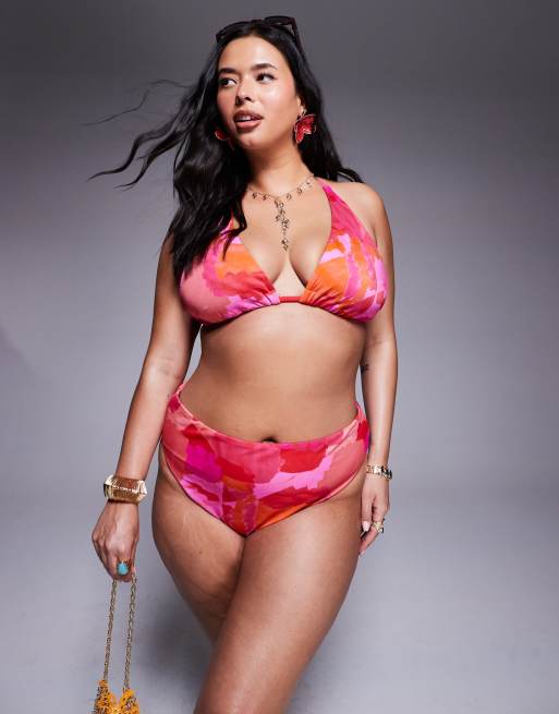 Esclusiva ASOS DESIGN Curve - Arina - Bikini rosa e rosso con stampa astratta