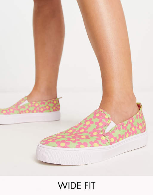 ASOS DESIGN - Dotty - Scarpe di tela senza lacci a pianta larga con stampa a fiori