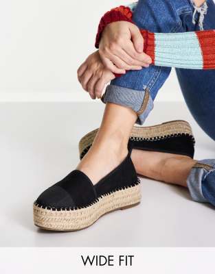 ASOS DESIGN - Jala - Espadrilles nere a pianta larga con punta a contrasto