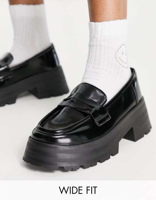 ASOS DESIGN - Moonlight - Mocassini a pianta larga chunky neri