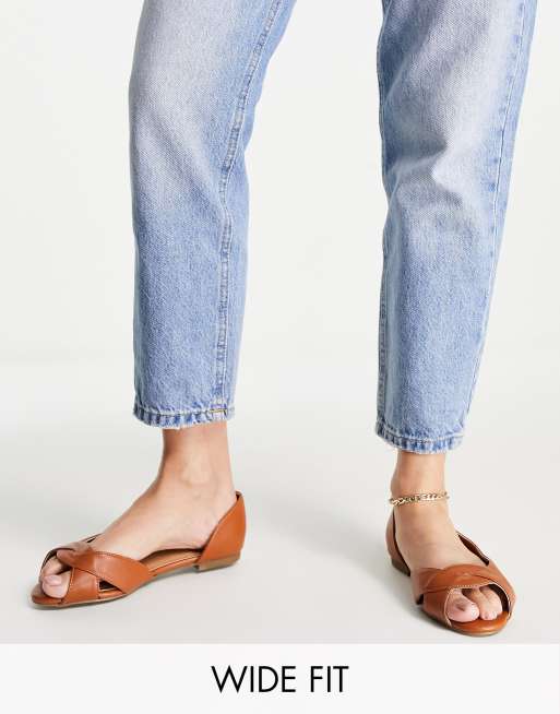 ASOS DESIGN - Vale - Ballerine a pianta larga aperte color cuoio
