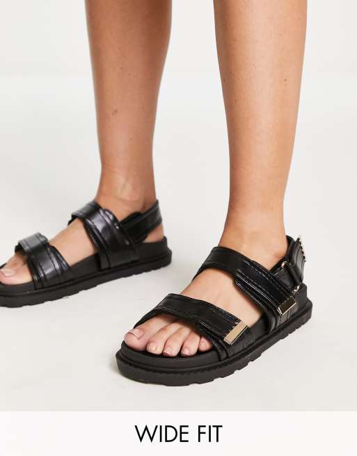ASOS DESIGN Wide Fit - Flume - Sandali bassi sportivi neri a pianta larga