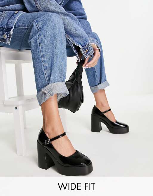 ASOS DESIGN Wide Fit - Penny - Scarpe Mary Jane a pianta larga con plateau e tacco alto nere