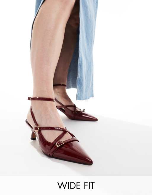 ASOS DESIGN Wide Fit - Scottie - Scarpe con tacchetto a spillo bordeaux a pianta larga con fibbia