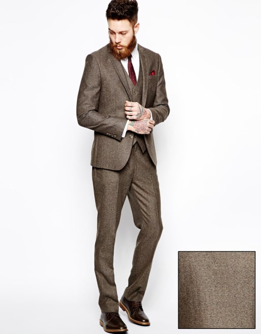 ASOS - Abito slim fit marrone a spina di pesce