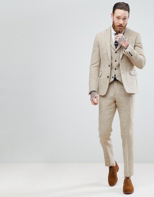 ASOS - Abito slim in 100% Harris tweed di lana a spina di pesce grigio talpa