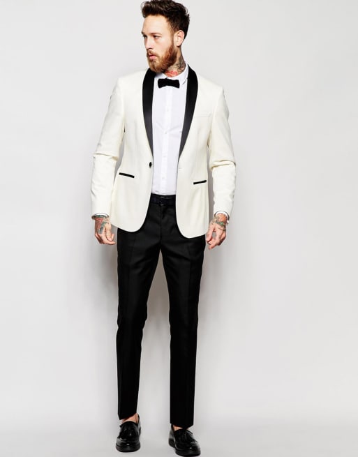 ASOS - Abito stile smoking slim fit con giacca bianca e pantaloni neri