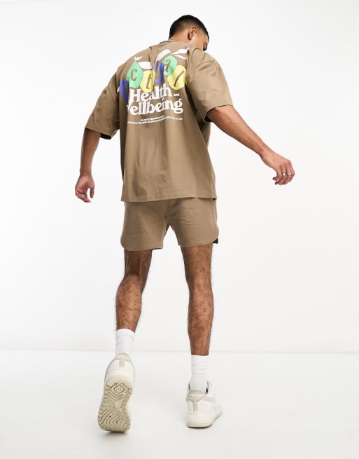 ASOS Actual - Coordinato marrone con logo di frutta "Health & Wellbeing"