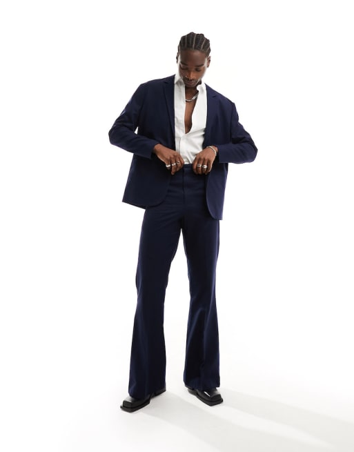 ASOS DESIGN - Abito doppiopetto blu navy in tessuto fiammato testurizzato