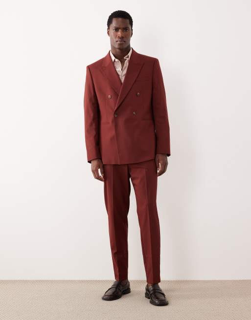 ASOS DESIGN - Abito doppiopetto bordeaux con vestibilità classica