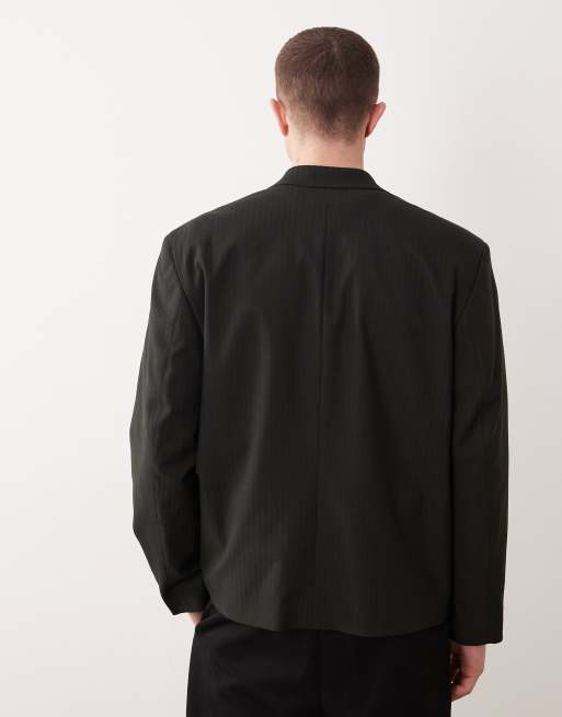 ASOS DESIGN - Abito doppiopetto squadrato verde scuro gessato