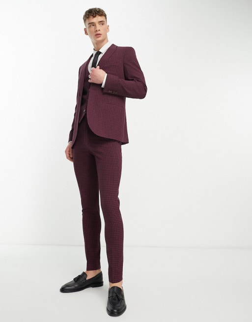 ASOS DESIGN - Abito skinny bordeaux a quadretti