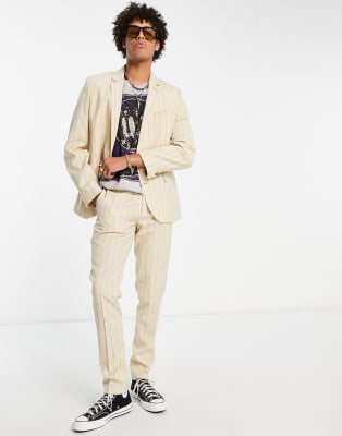 ASOS DESIGN - Abito skinny color pietra a righe tono su tono
