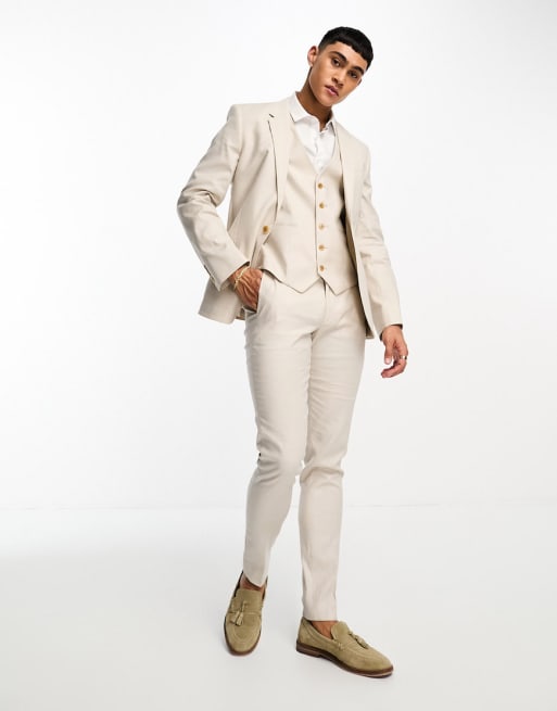 ASOS DESIGN - Abito skinny in misto lino color pietra
